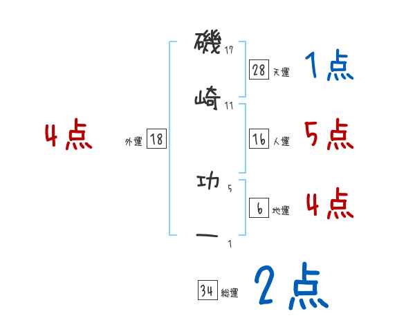 磯崎功一さんの画数の鑑定結果