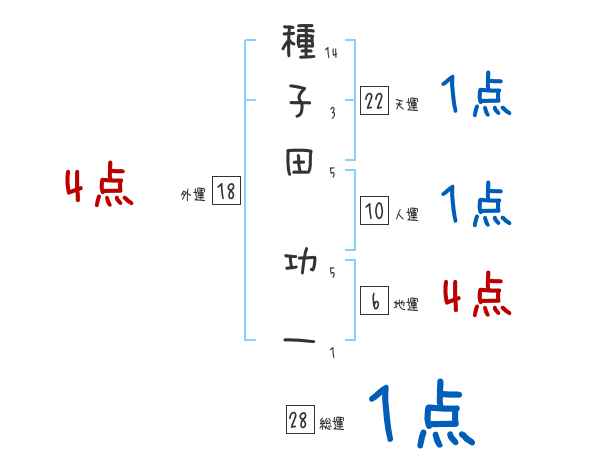 総運![]() | 種子田功一さんの総運は28画の1つ星!家庭環境に注意。スポーツで活躍できる能力があるかも。 あなたの人生を表す1番重要な運勢です。生涯を通じて影響する総合運となり、主に50歳以降の晩年期に影響を及ぼします。 |