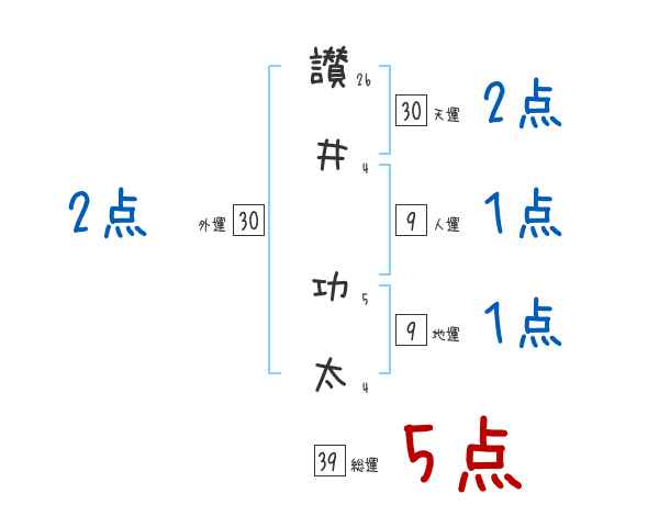 讃井功太さんの画数の鑑定結果