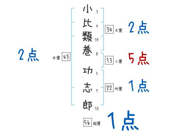 小比類巻功志郎さんの画数の鑑定結果