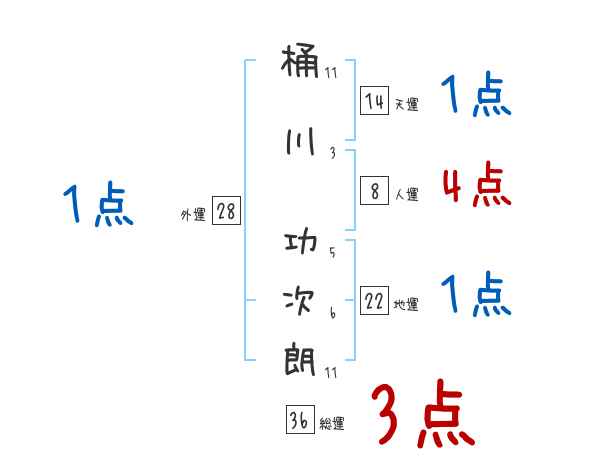桶川功次朗さんの画数の鑑定結果