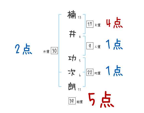 楠井功次朗さんの画数の鑑定結果