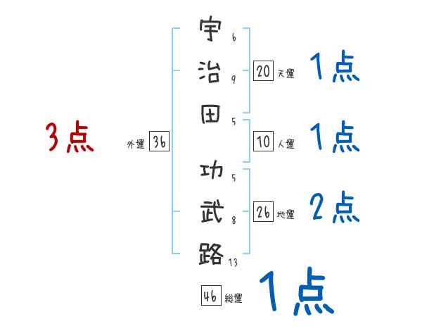 宇治田功武路さんの画数の鑑定結果
