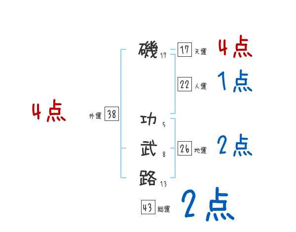 磯功武路さんの画数の鑑定結果