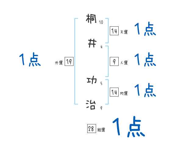 桐井功治さんの画数の鑑定結果