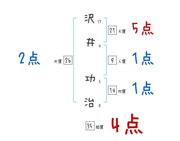 沢井功治さんの画数の鑑定結果