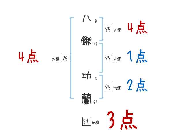 八鍬功蘭さんの画数の鑑定結果
