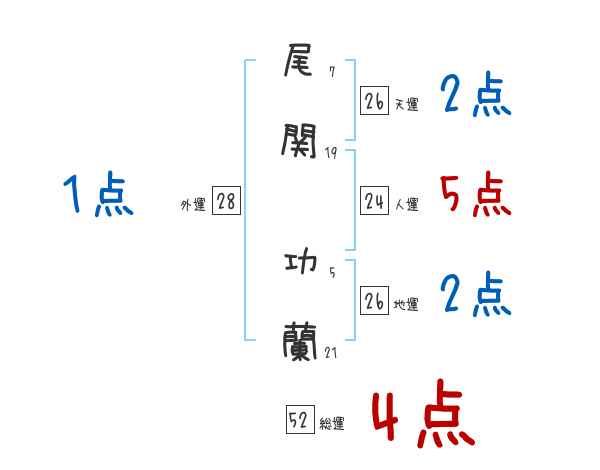 尾関功蘭さんの画数の鑑定結果