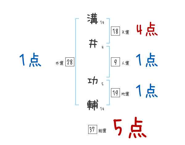 天運![]() | 溝井功輔さんの天運は18画の4つ星!情熱的で剛気。忍耐力があり信頼される。 家系が持つ宿命的な運勢を表します。祖先から受け継いだ苗字ですので自分の力が及びません。家柄を象徴します。 |
