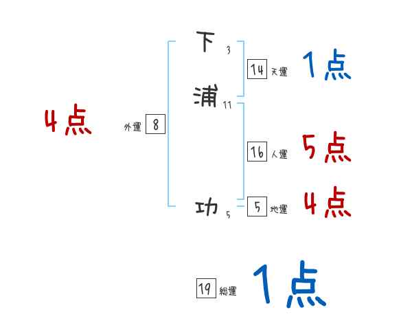 下浦功さんの画数の鑑定結果