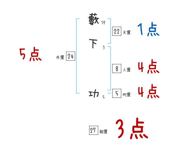 藪下功さんの画数の鑑定結果