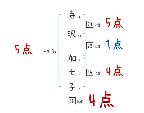 寺沢加七子さんの画数の鑑定結果