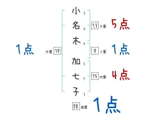 小名木加七子さんの画数の鑑定結果