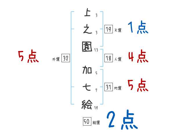外運![]() | 上之園加七絵さんの外運は32画の5つ星!柔軟性があり成功する。チャンスが多く金運が良い。 生活面を象徴する運勢です。外部から受ける影響力を表し、結婚運、家庭運や職場、環境への順応性を表します。 |