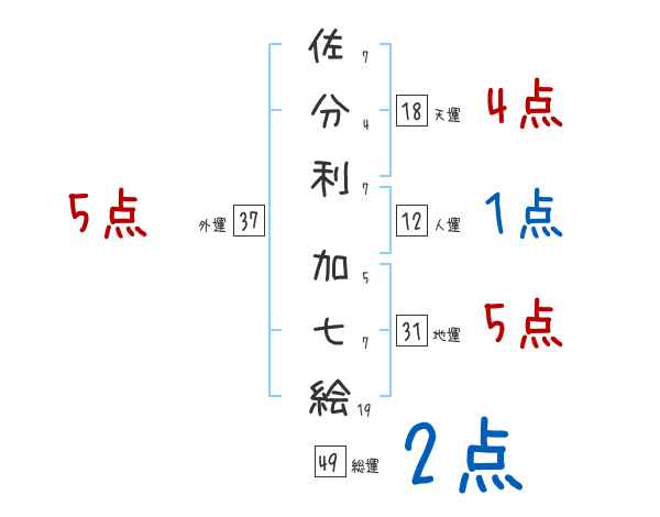 佐分利加七絵さんの画数の鑑定結果