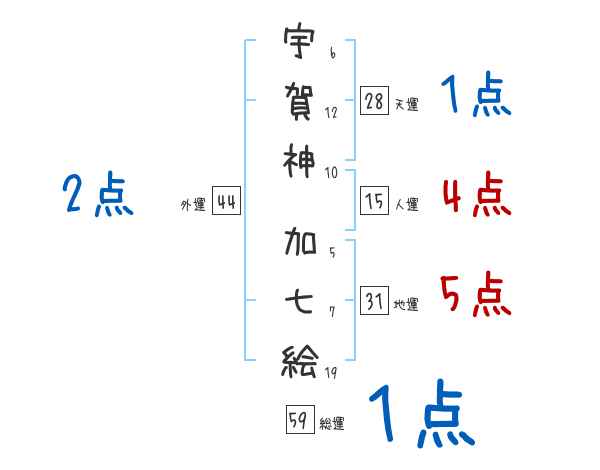 宇賀神加七絵さんの画数の鑑定結果