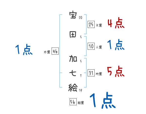 宝田加七絵さんの画数の鑑定結果