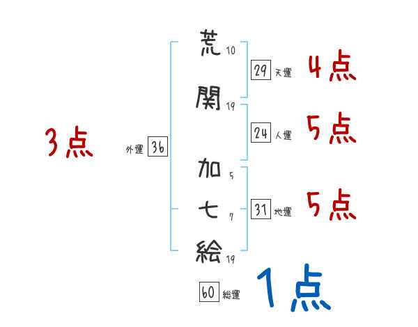 荒関加七絵さんの画数の鑑定結果