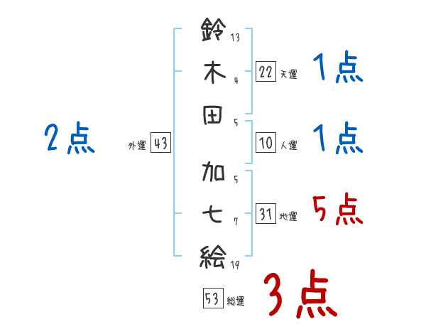 鈴木田加七絵さんの画数の鑑定結果