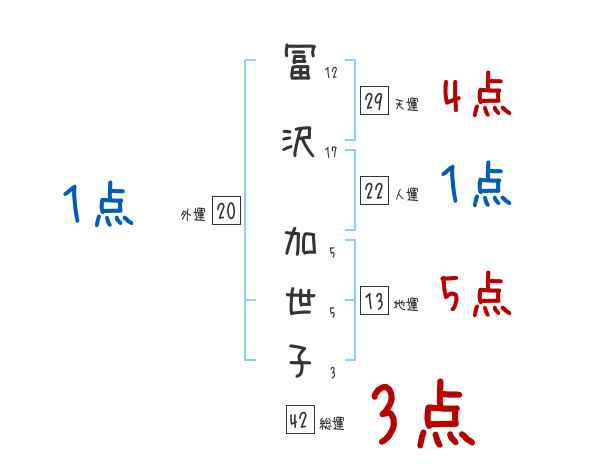 総運![]() | 冨沢加世子さんの総運は42画の3つ星!病気に注意。多芸であるが消極的でおとなしい。 あなたの人生を表す1番重要な運勢です。生涯を通じて影響する総合運となり、主に50歳以降の晩年期に影響を及ぼします。 |