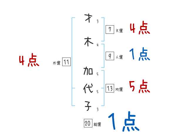 天運![]() | 才木加代子さんの天運は7画の4つ星!強い意志や信念を持ち独立心が強い。自立する。 家系が持つ宿命的な運勢を表します。祖先から受け継いだ苗字ですので自分の力が及びません。家柄を象徴します。 |
