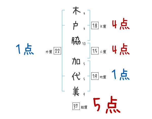 総運![]() | 木戸脇加代美さんの総運は37画の5つ星!努力家で順応性に優れる。現実的な考え方ができ忠実に物事をこなす。 あなたの人生を表す1番重要な運勢です。生涯を通じて影響する総合運となり、主に50歳以降の晩年期に影響を及ぼします。 |