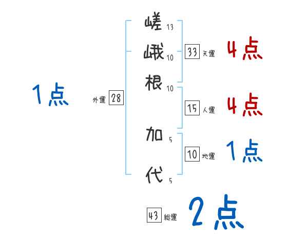 嵯峨根加代さんの画数の鑑定結果