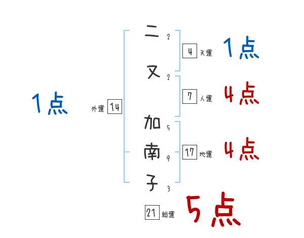 二又加南子さんの画数の鑑定結果
