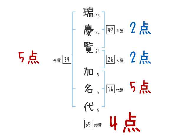 瑞慶覧加名代さんの画数の鑑定結果