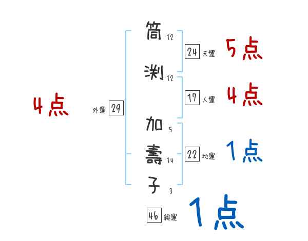筒渕加壽子さんの画数の鑑定結果