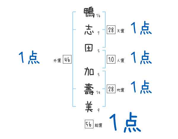 鴨志田加壽美さんの画数の鑑定結果