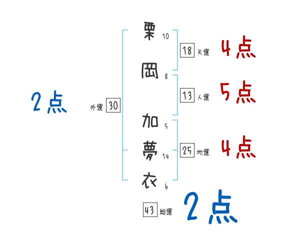 家系が持つ宿命的な運勢を表します。祖先から受け継いだ苗字ですので自分の力が及びません。家柄を象徴します。
