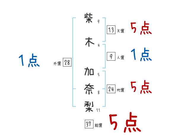 外運![]() | 柴木加奈梨さんの外運は28画の1つ星!家庭環境に注意。スポーツで活躍できる能力があるかも。 生活面を象徴する運勢です。外部から受ける影響力を表し、結婚運、家庭運や職場、環境への順応性を表します。 |