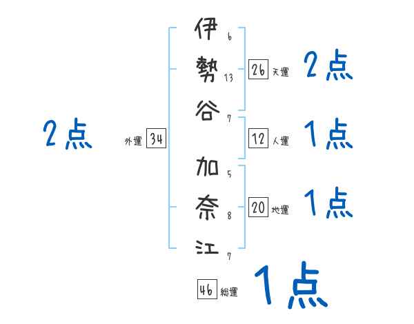天運![]() | 伊勢谷加奈江さんの天運は26画の2つ星!波瀾万丈かも。信頼できる人を大事にしましょう。 家系が持つ宿命的な運勢を表します。祖先から受け継いだ苗字ですので自分の力が及びません。家柄を象徴します。 |