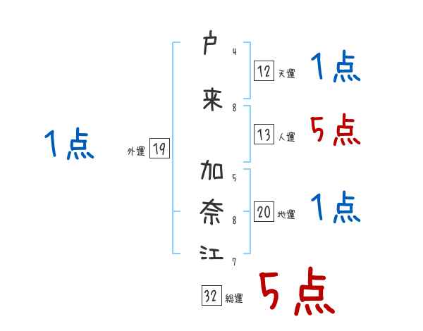 戸来加奈江さんの画数の鑑定結果