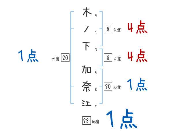 木ノ下加奈江さんの画数の鑑定結果