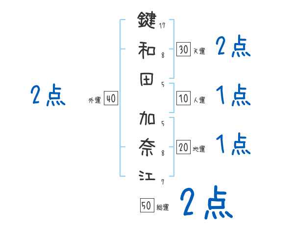 鍵和田加奈江さんの画数の鑑定結果