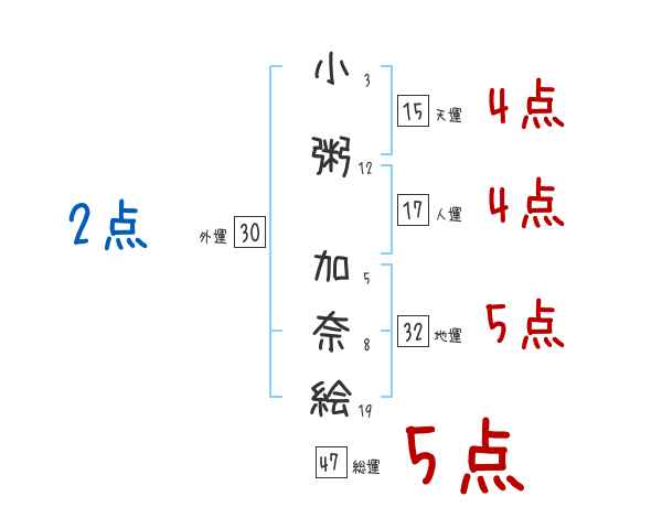小粥加奈絵さんの画数の鑑定結果