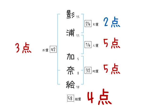 影浦加奈絵さんの画数の鑑定結果