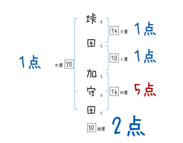 地運![]() | 垰田加守田さんの地運は16画の5つ星!人望が厚く大きく発展する。逆転成功が見える。 個性を表す基礎的な運勢です。性格形成や対人関係、行動力など家庭環境に影響されます。主に誕生してから20歳くらいまでの若年期の運勢を表します。 |