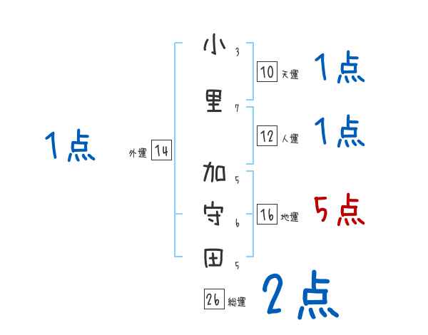 小里加守田さんの画数の鑑定結果