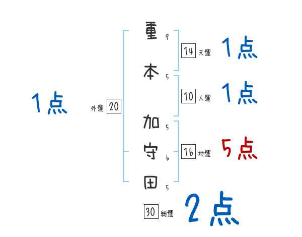重本加守田さんの画数の鑑定結果