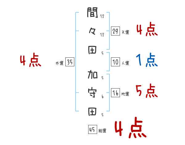 間々田加守田さんの画数の鑑定結果