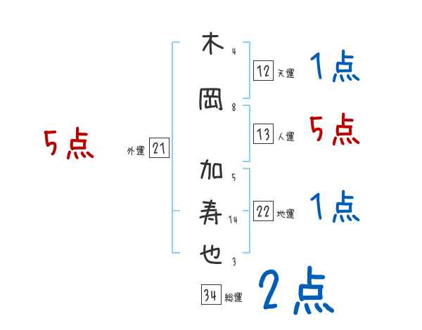 総運![]() | 木岡加寿也さんの総運は34画の2つ星!独創性に優れるが、自尊心が強く災難に注意しましょう。 あなたの人生を表す1番重要な運勢です。生涯を通じて影響する総合運となり、主に50歳以降の晩年期に影響を及ぼします。 |