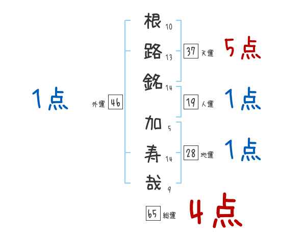 地運![]() | 根路銘加寿哉さんの地運は28画の1つ星!家庭環境に注意。スポーツで活躍できる能力があるかも。 個性を表す基礎的な運勢です。性格形成や対人関係、行動力など家庭環境に影響されます。主に誕生してから20歳くらいまでの若年期の運勢を表します。 |