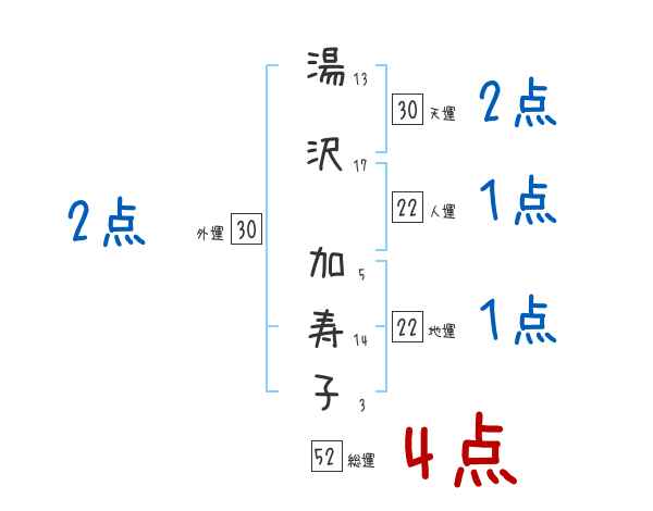 湯沢加寿子さんの画数の鑑定結果
