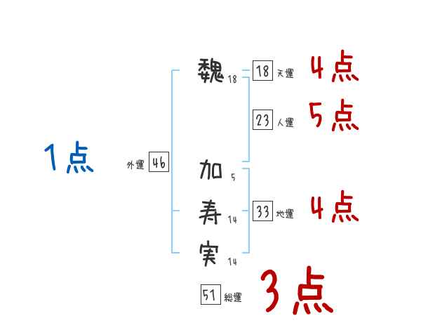 魏加寿実さんの画数の鑑定結果