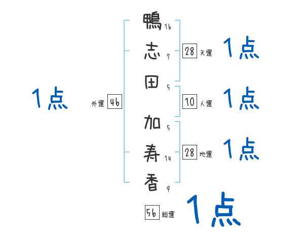 鴨志田加寿香さんの画数の鑑定結果