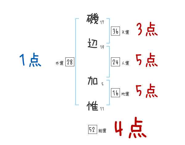 磯辺加惟さんの画数の鑑定結果