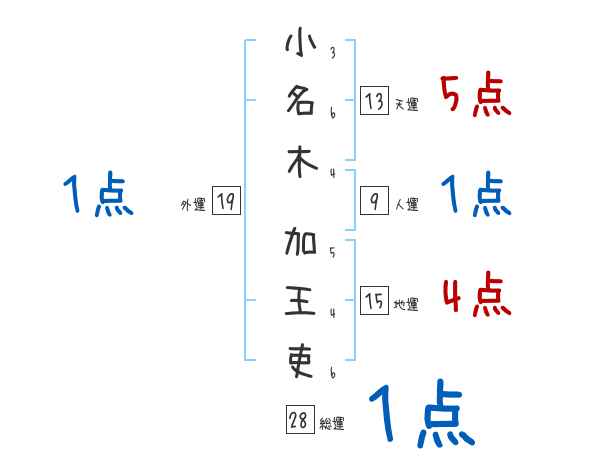 小名木加王吏さんの画数の鑑定結果
